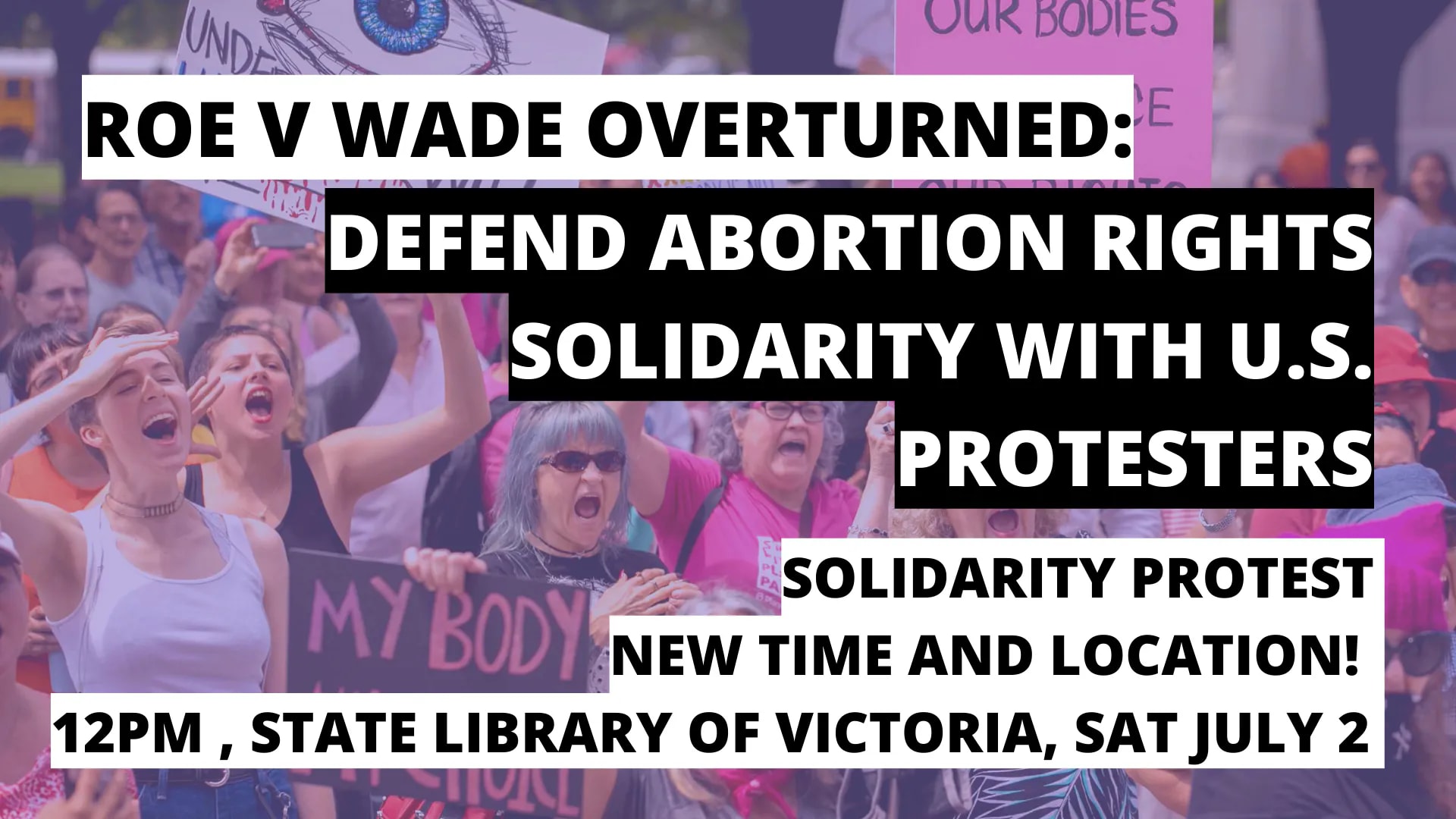 Join us to protest in solidarity with those fighting back in America, and to say loud and clear - we will oppose right wing religious bigots, we will defend abortion rights, womens rights and all LGBTIQ+ people at every turn wherever and whenever they trample on our rights from the USA to Australia.