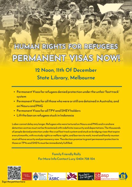 *Permanent Visas for refugees and asylum seekers denied protection under the unfair 'fast track' system