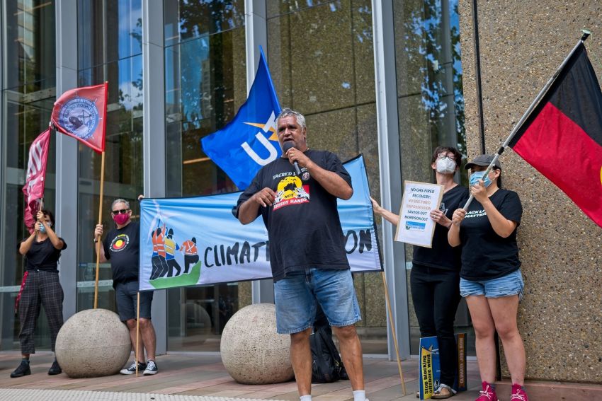 The protest, co-organised by Workers for Climate Action, highlighted how destructive the federal government’s “gas-fired recovery” policy is on First Nations rights.