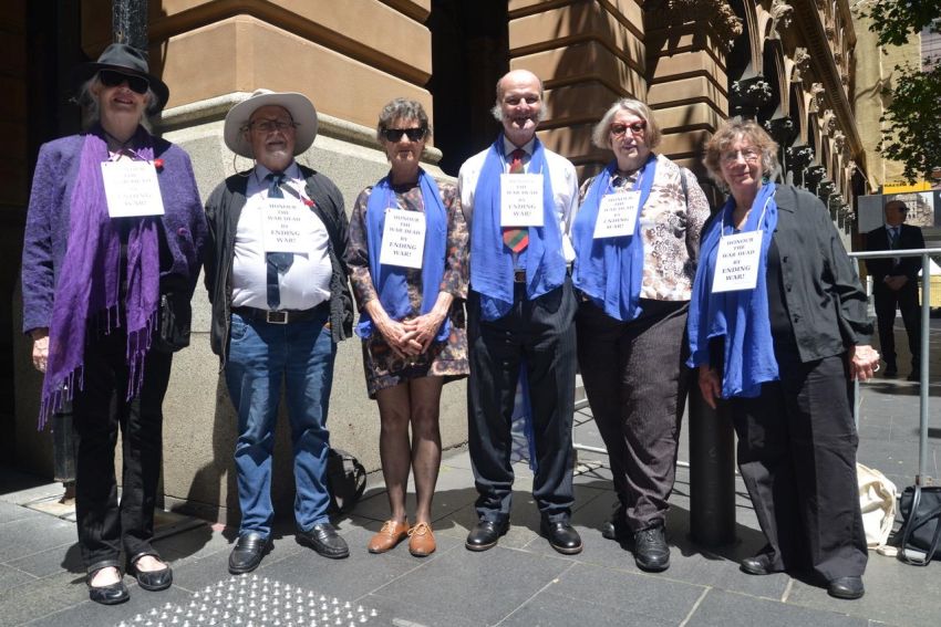 “Honour the war dead by ending war” was the theme of a gathering of peace activists in Martin Place in front of the official ceremony commemorating Armistice Day, November 11.