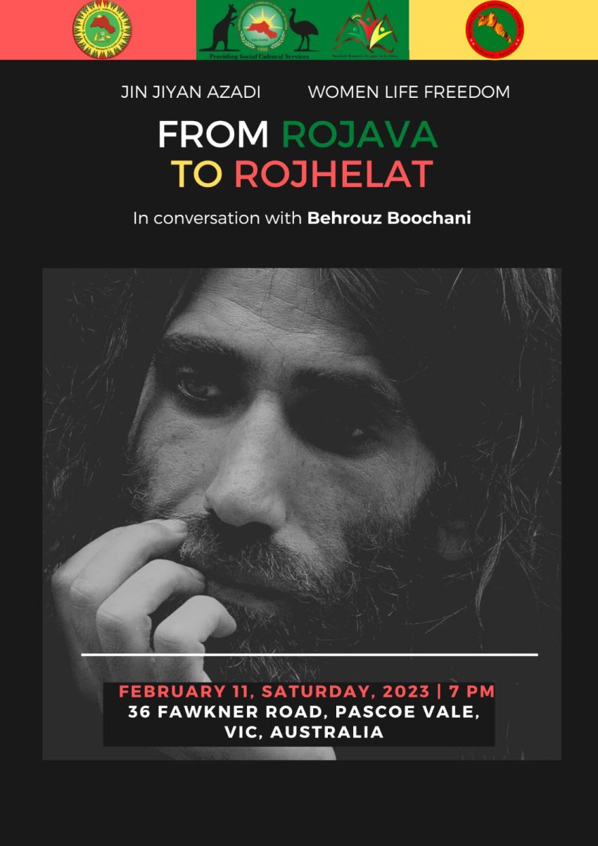 So hear Behrouz Boochani, world-renowned author of books ''No Friends but the Mountains'' and his latest "Freedom only Freedom" touch on the issues that Kurds face in this region, and what the revolution in Rojhelat and Iran could change for them. The event will be on Saturday the 11th of February, at the Kurdish Community Centre at 36 Fawkener Road, Pascoe Vale, from 7-9pm