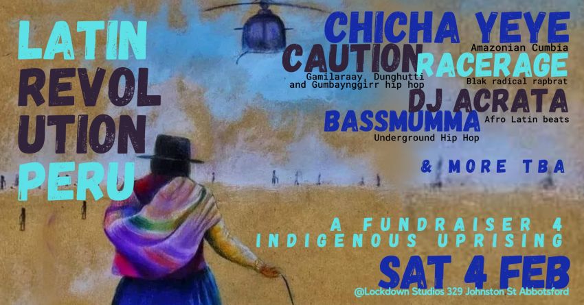 $15 waged / $10 unwaged (no one turned away) - all proceeds go to Indigenous independent media & organising collectives in Peru - Rimac Llaqta and Tv Chalhuanca.
