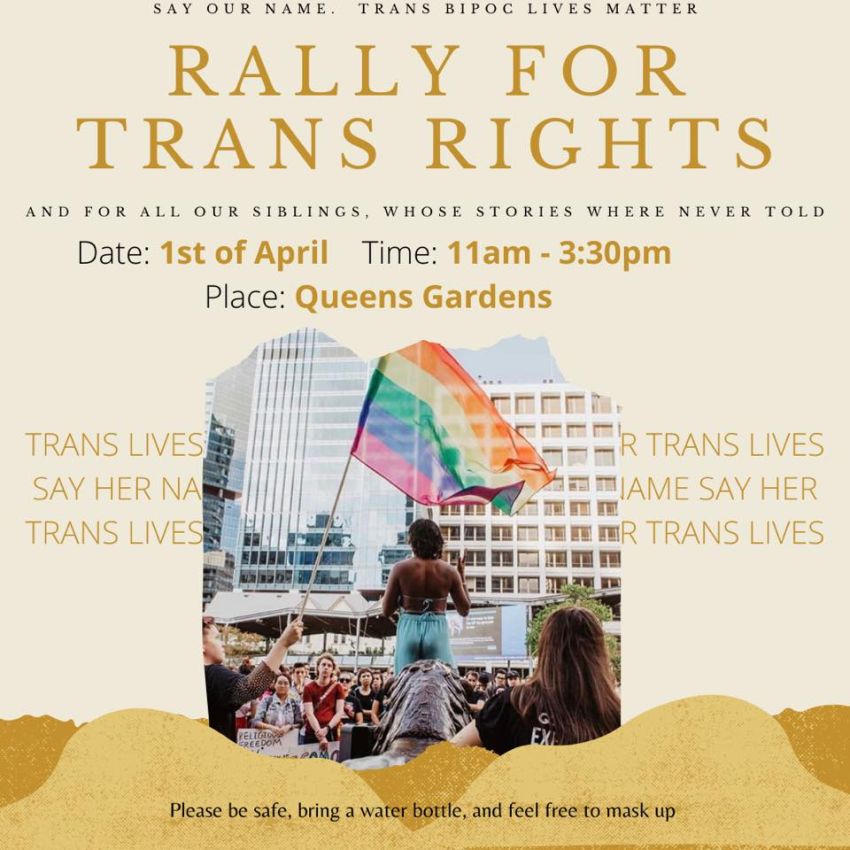 Rally in solidarity with all our trans siblings, across so called Australia, and Aotearoa in response to the recent wave of bigotry directed at us. Stand with us, as we stand up!