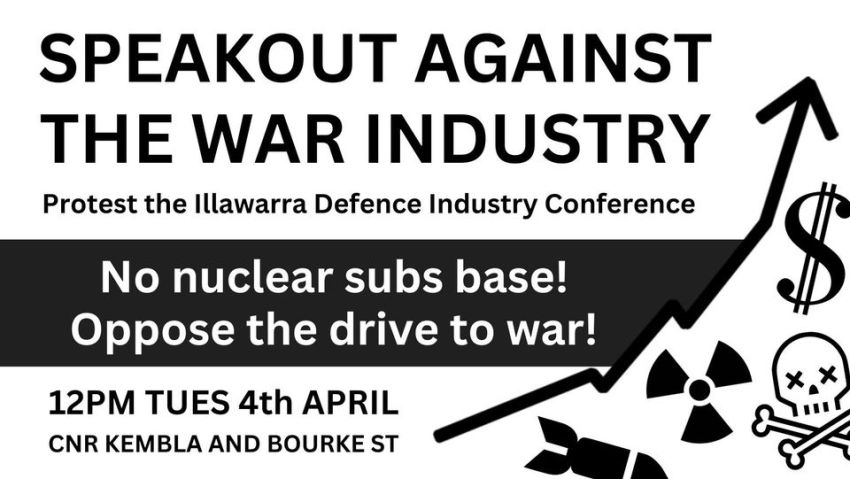 No nuclear subs base! Oppose the drive to war! Join WAWAN to protest the war industrialists gathering at the Illawarra Defence Industry Conference - let's send a message that the people of Wollongong and surrounds reject war and the companies who profit from it.