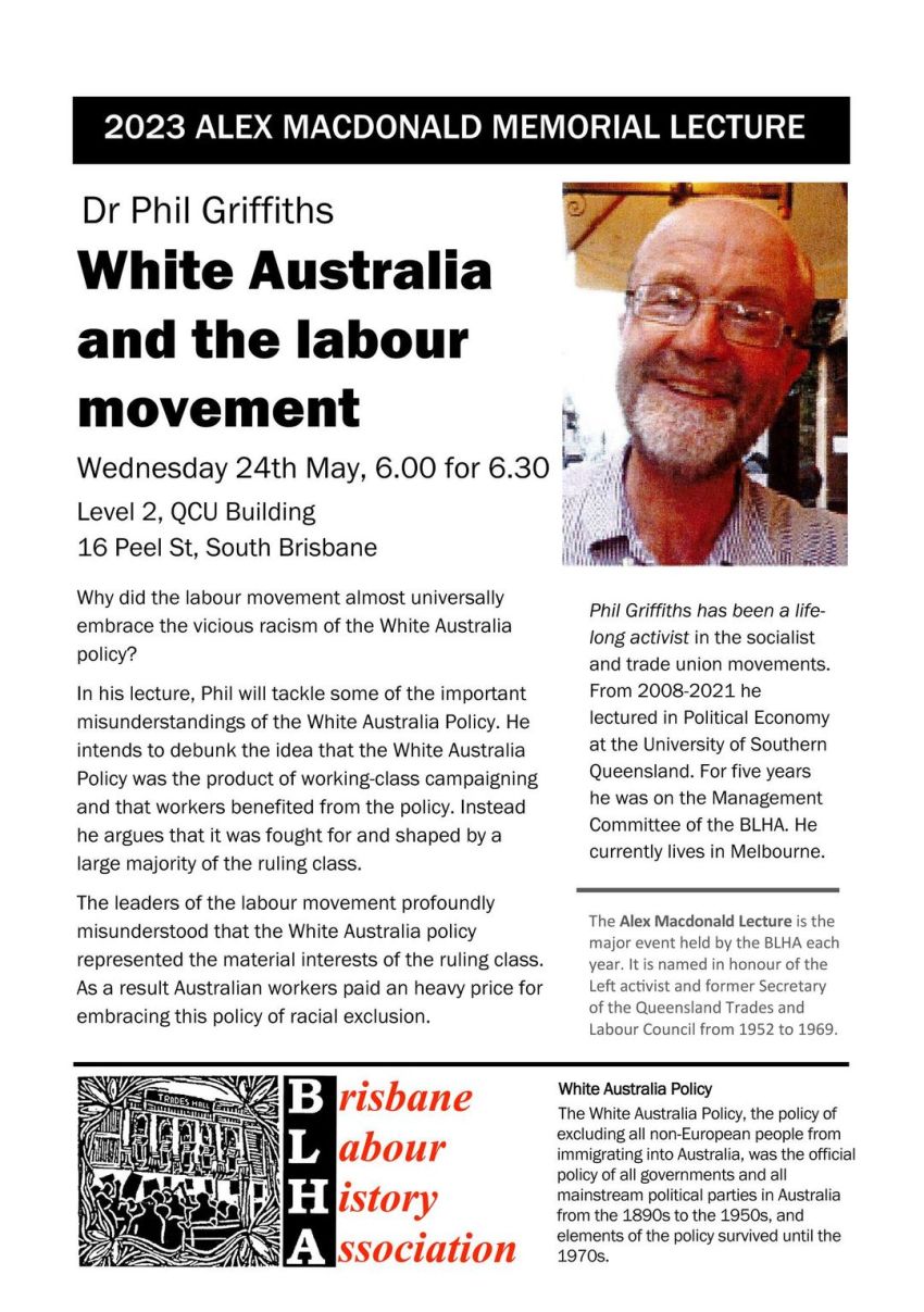 Phil Griffiths presenting the Alex Macdonald Memorial Lecture on "White Australia and the labour movement"