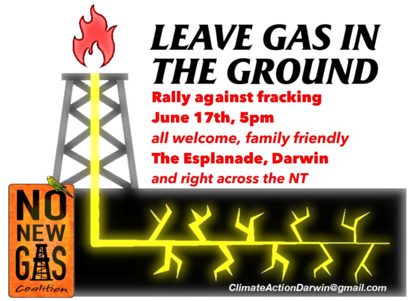 The No New Gas Coalition in response to the governments fracking the Beetaloo decision, invites Territorians and visitors to participate in a Territory wide Day of Action on June 17. We plan peaceful, family friendly events in Darwin, Nhulunbuy, Katherine, Borroloola, Tennant Creek, Alice Springs and other places.