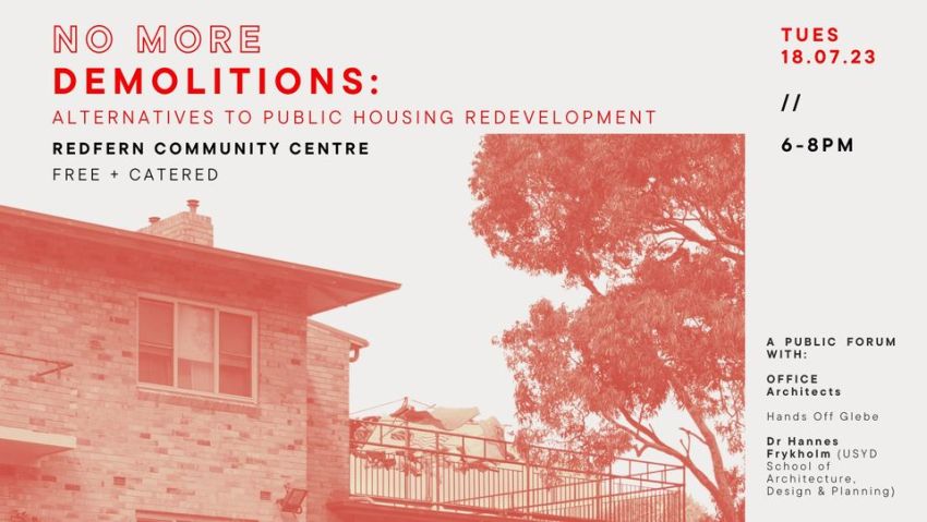 Join us @ Redfern Community Centre for a free & catered public forum discussing alternatives to redevelopment! Or register using this link to join via Zoom