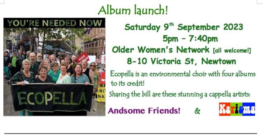 Ecopella at last presents the long-delayed launch [thanks Covid!) of our fourth album, You're Needed Now. This is some of our most upbeat and fiery save-the-world music!