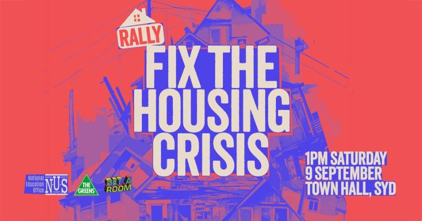 On Saturday 9 September, the National Union of Students’ Get A Room campaign, in collaboration with the NSW Greens’ housing and homelessness spokesperson Jenny Leong, are calling on supporters to join a Sydney-wide demonstration to FIX THE HOUSING CRISIS ahead of the upcoming NSW state budget.