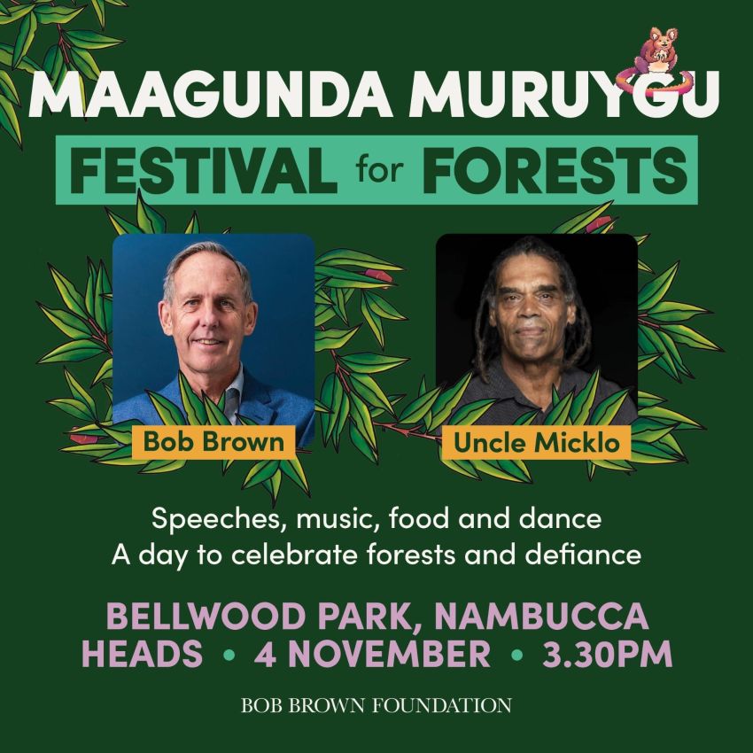 Let's come together with Gumbaynggirr people and local communities to celebrate forests at a time they are being industrially logged .