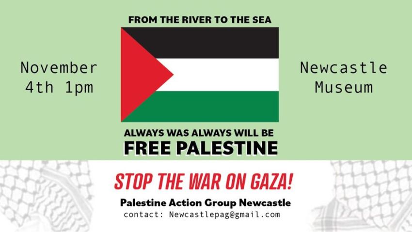Newcastle based protest calling for the end to the genocide of Palestinians.