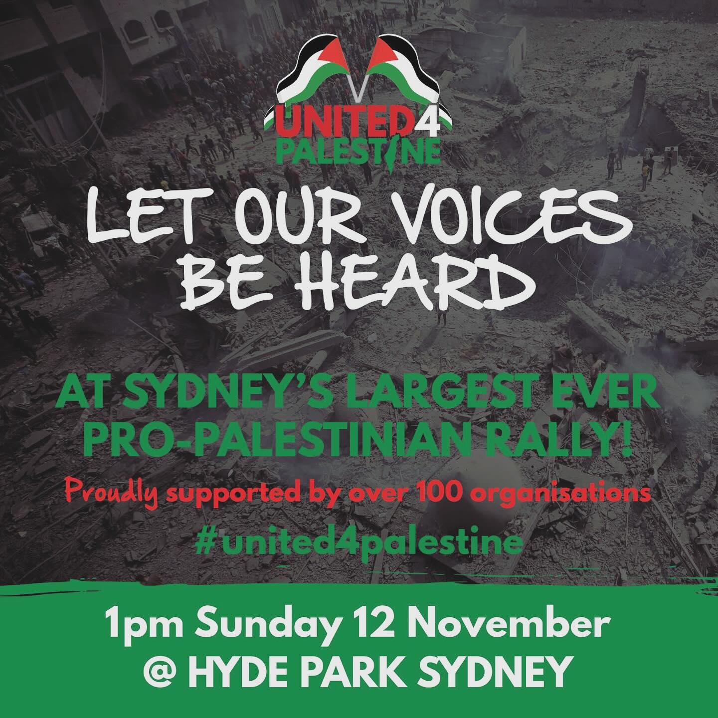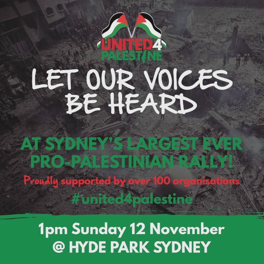 Palestine Action Group acknowledge that this protest is taking place on the stolen Aboriginal land of the Gadigal people.