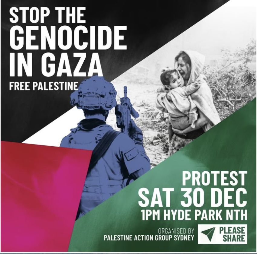 Israel continues its genocidal campaign in Gaza, with the complicity of the world's governments, especially the US, and including Australia. Over 20,000 have now been killed in Gaza, including 9,000 children.