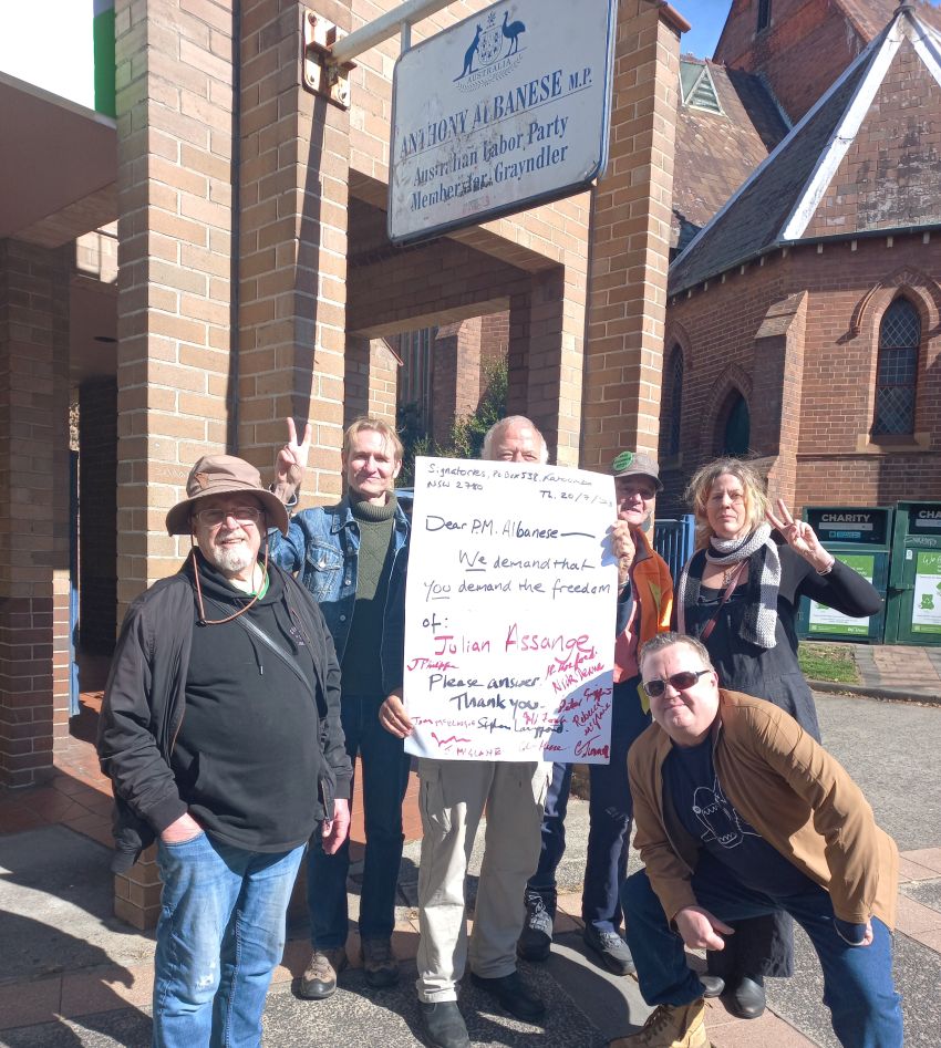 Activists calling for Julian Assange to be freed gathered outside Prime Minister Anthony Albanese’s electorate office in Marrickville on July 20 to deliver a giant letter demanding he be freed and not extradited to the United States.