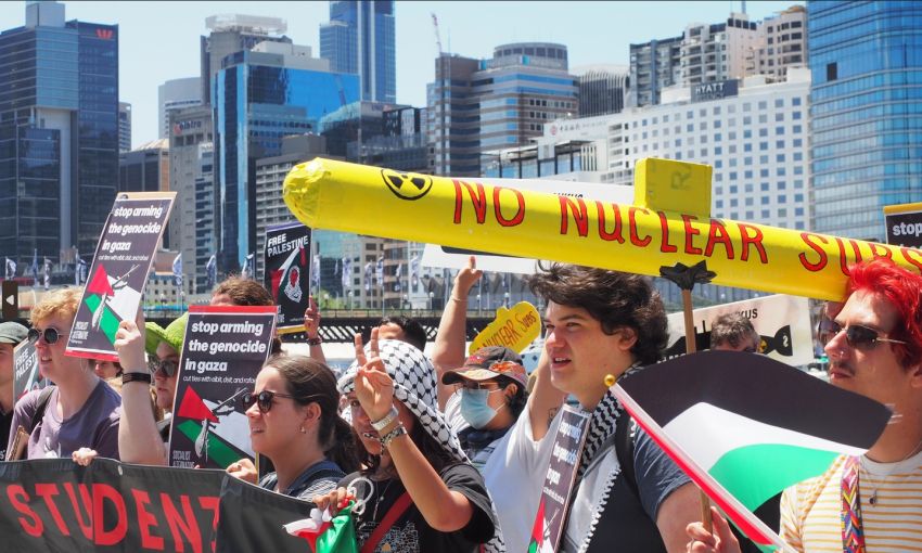 Wage Peace — Disrupt War organised a series of actions outside 2023 Indo-Pacific Naval Expo over November 4–6, including chanting anti-war and anti-militarisation slogans at a social event on November 6.