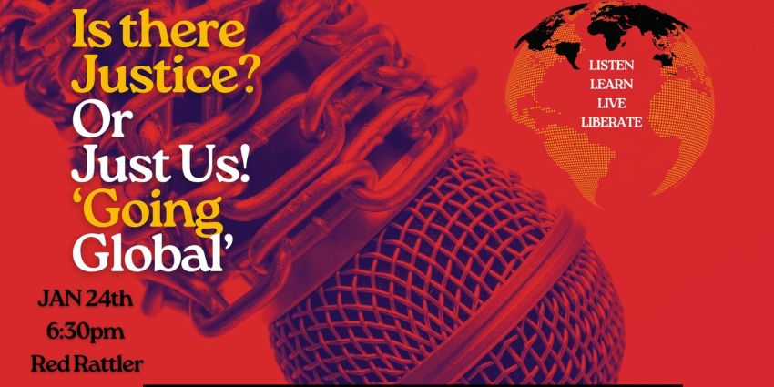 ‘Is there Justice or JustUs? Going Global’ will first have a panel then open the floor to an open mic for poetry and storytelling. Coming together as a collective of communities to show that unity is power, we want to hear from you. You are invited to the Open Mic, Topic: ‘Going Global’.