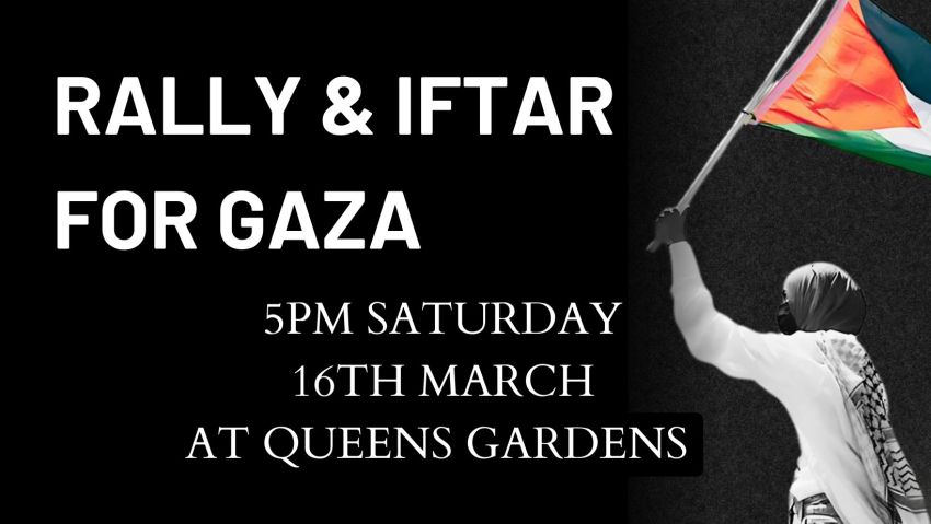 This Ramadan Israel is starving Palestinians. Join us as we rally and fast in solidarity with people in Gaza. We will break fast together after expressing our protest against the genocide.