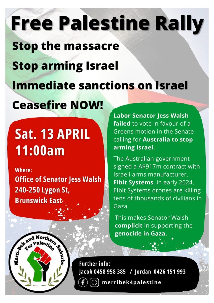 Called by Merri Bek and Northern Suburbs for Palestine.