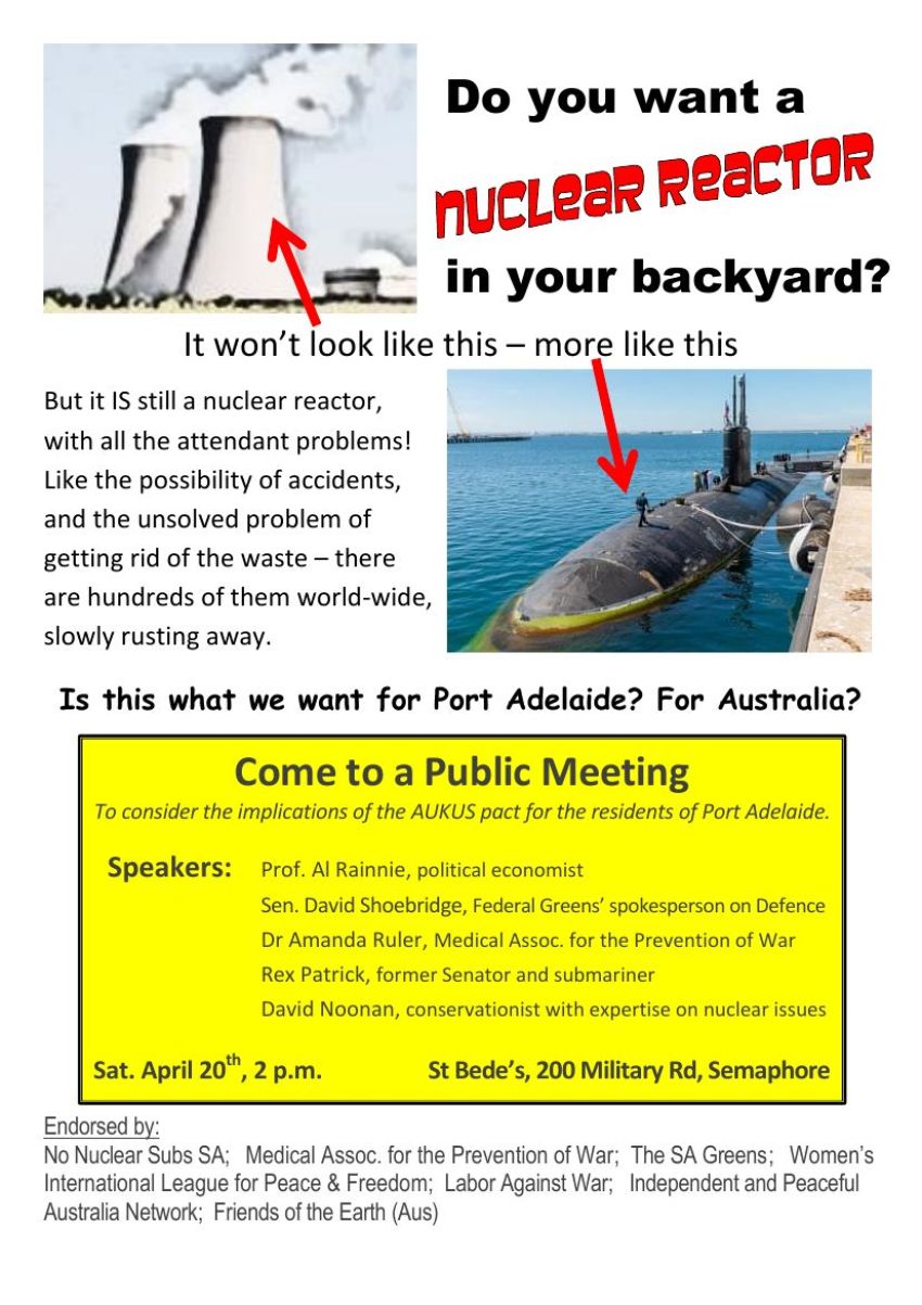 The SA and Port Adelaide communities have a right to have a say on nuclear safety and on the risks in bringing naval nuclear reactors into the Port.