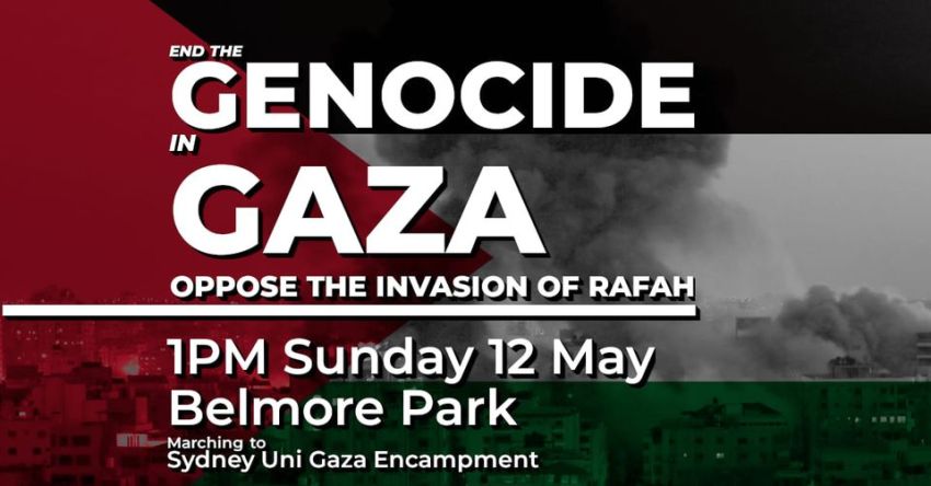 We are starting our rally at Belmore Park (next to Central station) this week so we can march to the Sydney University Gaza solidarity encampment, on the Quad lawns.