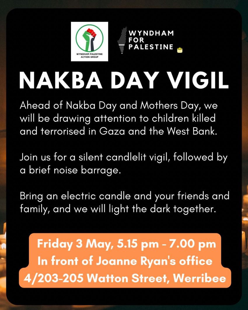 🕯️ Meet us outside Joanne Ryan’s office for a silent vigil in honour of the children of Palestine.