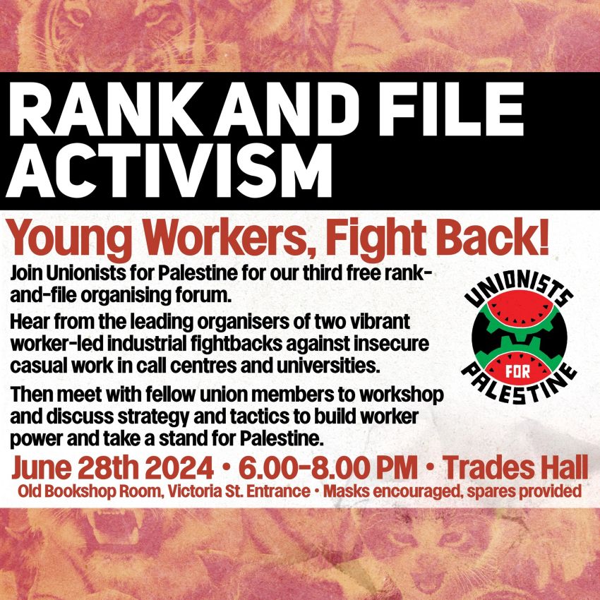 Rank and file forums are back! June 28th 6:00pm Victoria St entrance — be there!