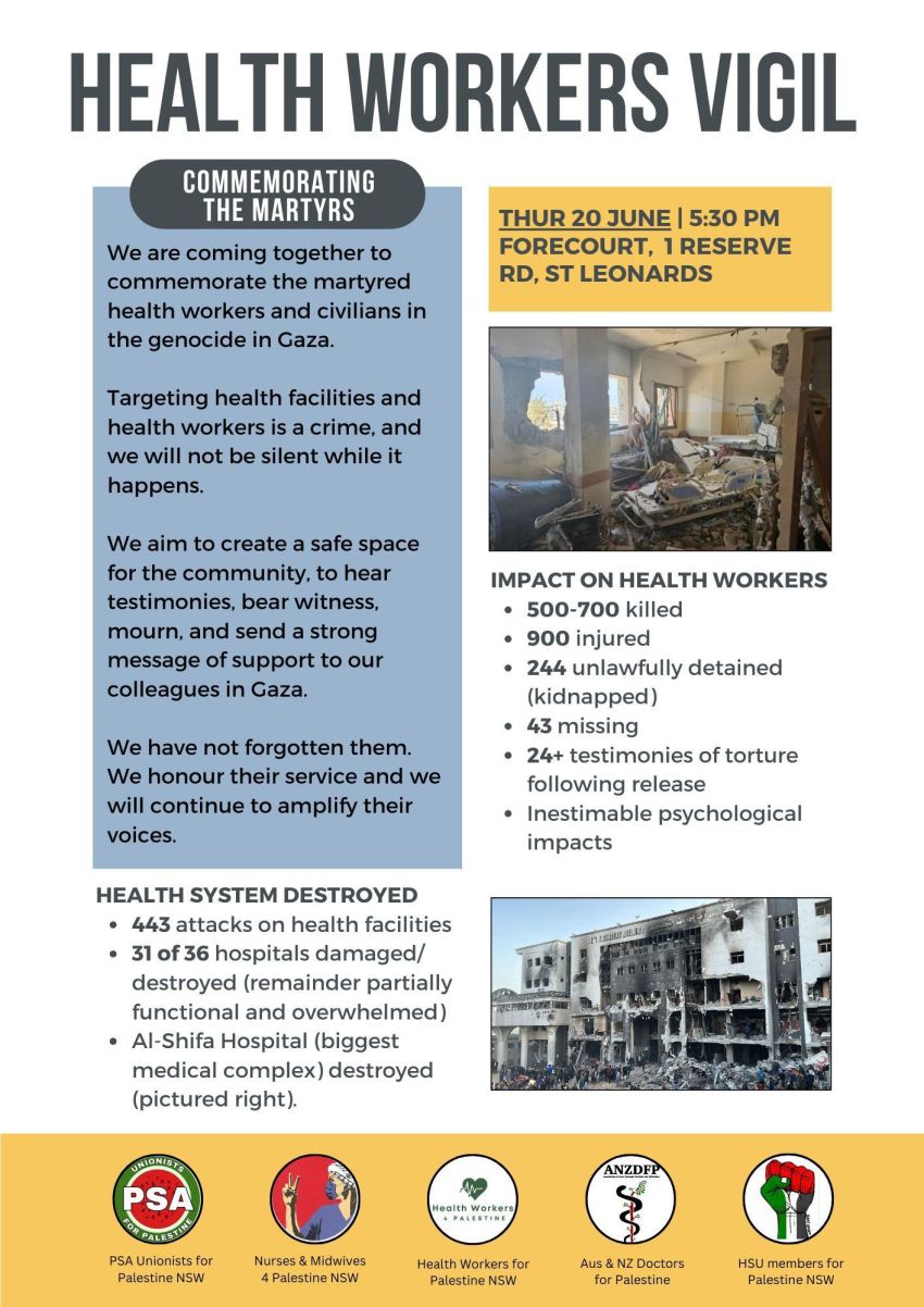 500-700 health workers have been killed, and 900 injured. Israeli forces have besieged many hospitals and carried out massacres, leaving hundreds dead in mass graves. Bodies of doctors were found still in their scrubs; patients with catheters still attached; displaced civilians slaughtered.