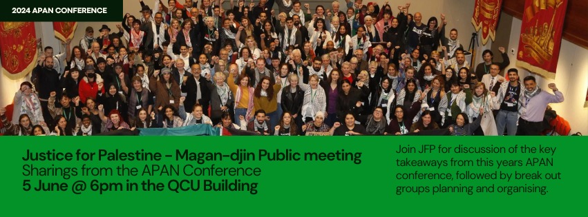 If you’re wanting to get more involved in organising in Magan-djin, come along and let’s keep this movement going! Help build solidarity with the people of Palestine.