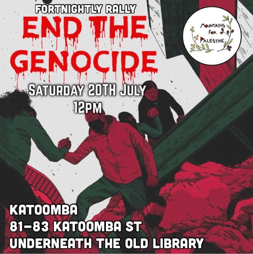 We rally on unceded Dharug and Gundungurra lands. We acknowledge Elders past, present and emerging. This always was and always will be Aboriginal land. The ongoing settler violence and colonialism across the world is interconnected and must be resisted.
