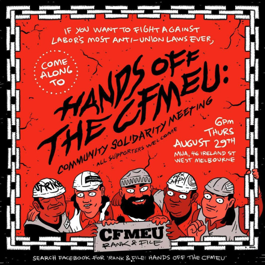 Open to CFMEU members, members of other unions, and communty supporters that want to fight against the harshest anti-union laws in Australian history.