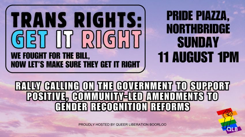 We fought for gender recognition reforms, and now it's time to put pressure on the state government to get them right before the Legislative Council sits in August, where it will likely debate reforms to the legislation. We understand a number of MPs will be moving amendments, and we need to show our collective strength in calling on the government to support the ones that our community is seeking, so we can have access to best-practice gender recognition processes in Western Australia.