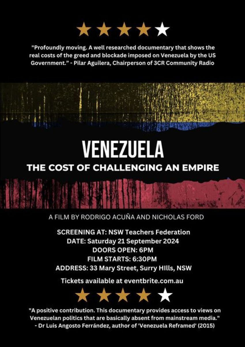 "A necessary documentary for these historical moments of Venezuela, and the greater homeland of Latin America, since it shows what unilateral sanctions mean. The interviews with women are particularly powerful and that makes me proud as a Venezuelan woman. Four stars." - Maruvi Leonett Villaquiran, Venezuelan filmmaker