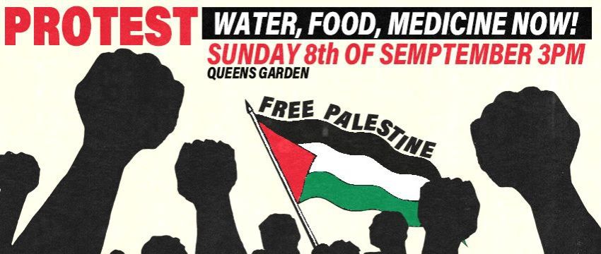 Let's take action for Palestine - on Sunday 8th of September at 3pm at Queen's Gardens in the city.