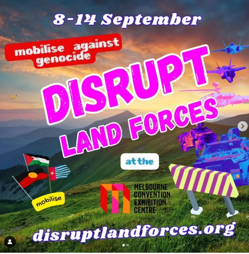 Land Forces is a massive weapons sales event, a one stop genocide shop. This is where the generals, weapons CEOs, diplomats and Defence Ministers come together to do the deals that end in massacres. Billions change hands at these events. Harms Dealers will spruik their latest killing tech, and governments will spend the people’s money on weapons to use against us.