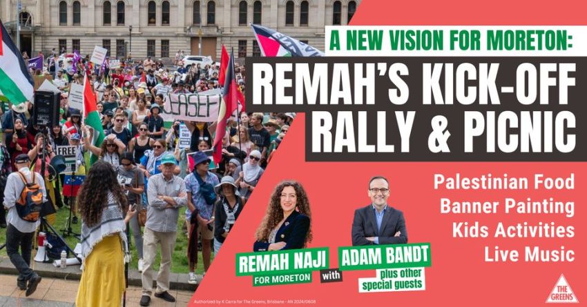 Join Greens candidate for Moreton, Remah Naji, and Australian Greens leader Adam Bandt and other community leaders, for a family-friendly celebration of grassroots power - with Palestinian food, sports, and live music.