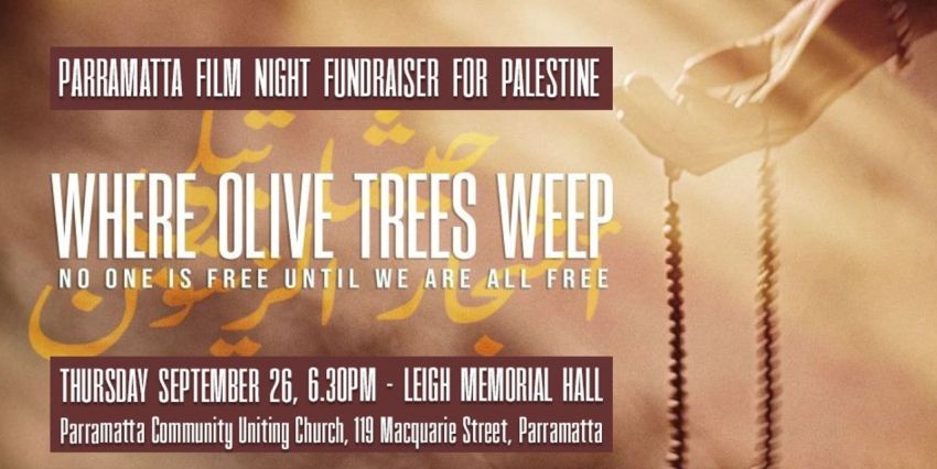 Where Olive Trees Weep will be screened at the Leigh Memorial Hall (Parramatta Community Uniting Church), 119 Macquarie Street, Parramatta on Thursday September 26, starting at 6.30pm. A light supper will be provided before the film starts at 7pm.