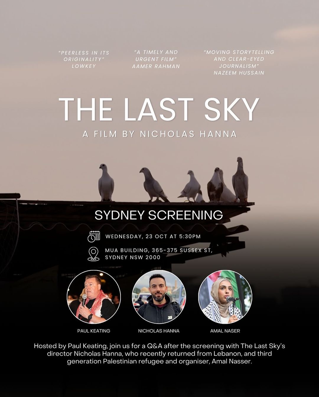 Join us for a special screening of this bold new documentary about the genocide in Gaza and the Lebanese support front. The screening will be followed by a Q&A with Palestinian organiser Amal Naser, Maritime Union of Australia Sydney Branch Secretary Paul Keating and the film’s director Nicholas Hanna.