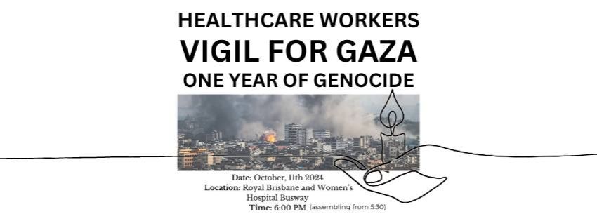 Join us for a vigil in remembrance of the healthcare workers and innocent civilians, including children, who have been killed in Gaza over the past 12 months of genocide. Since the start of Israel's brutal campaign in Gaza, over 40000 people have been killed, including over 17000 children. Among them are over 595 healthcare workers.