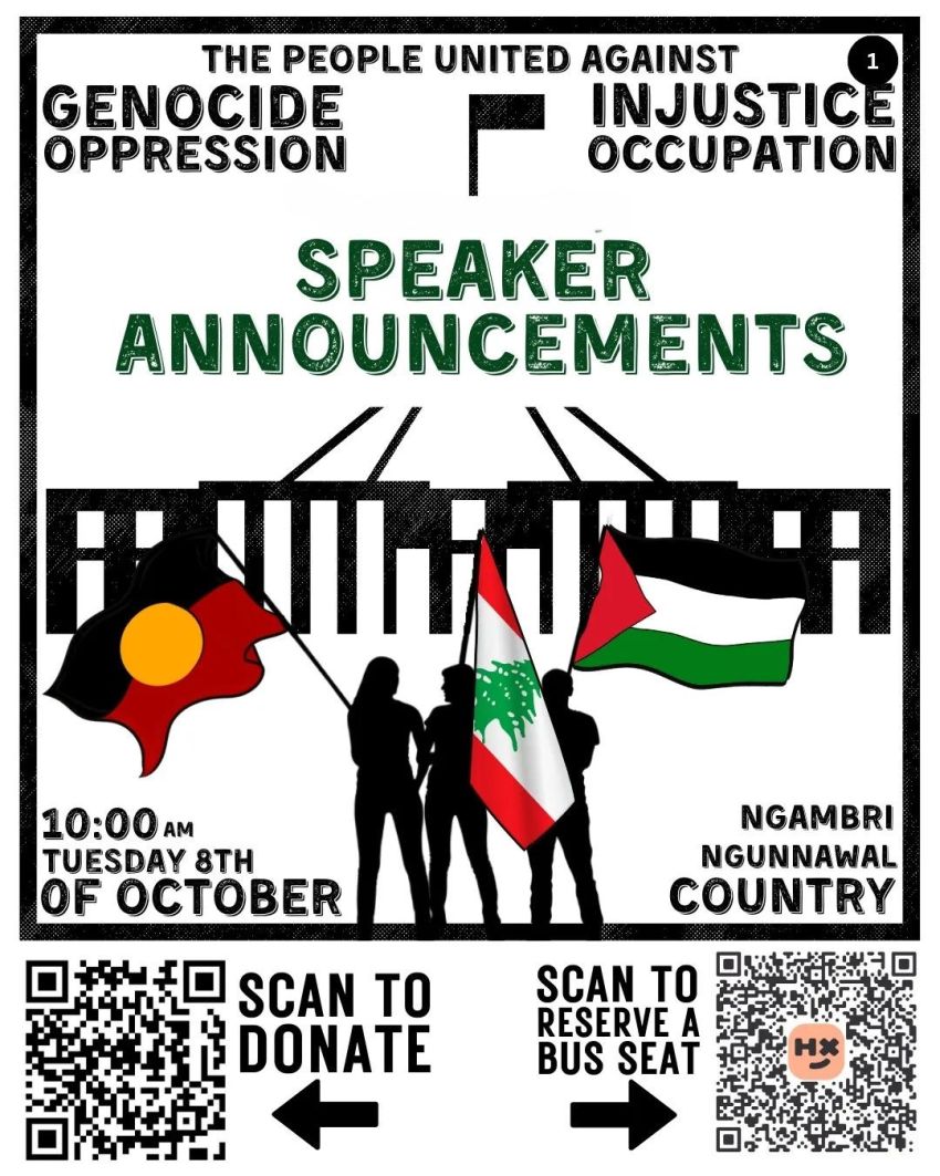 Activists, First Nations Elders, Nakba survivors, MP’s, multi-faith leaders, NGOs, academics, healthcare and aid workers, union reps, solidarity groups and artists will converge on Parliament House in Ngambri/Ngunnawal country, Canberra, for a protest and press conference.