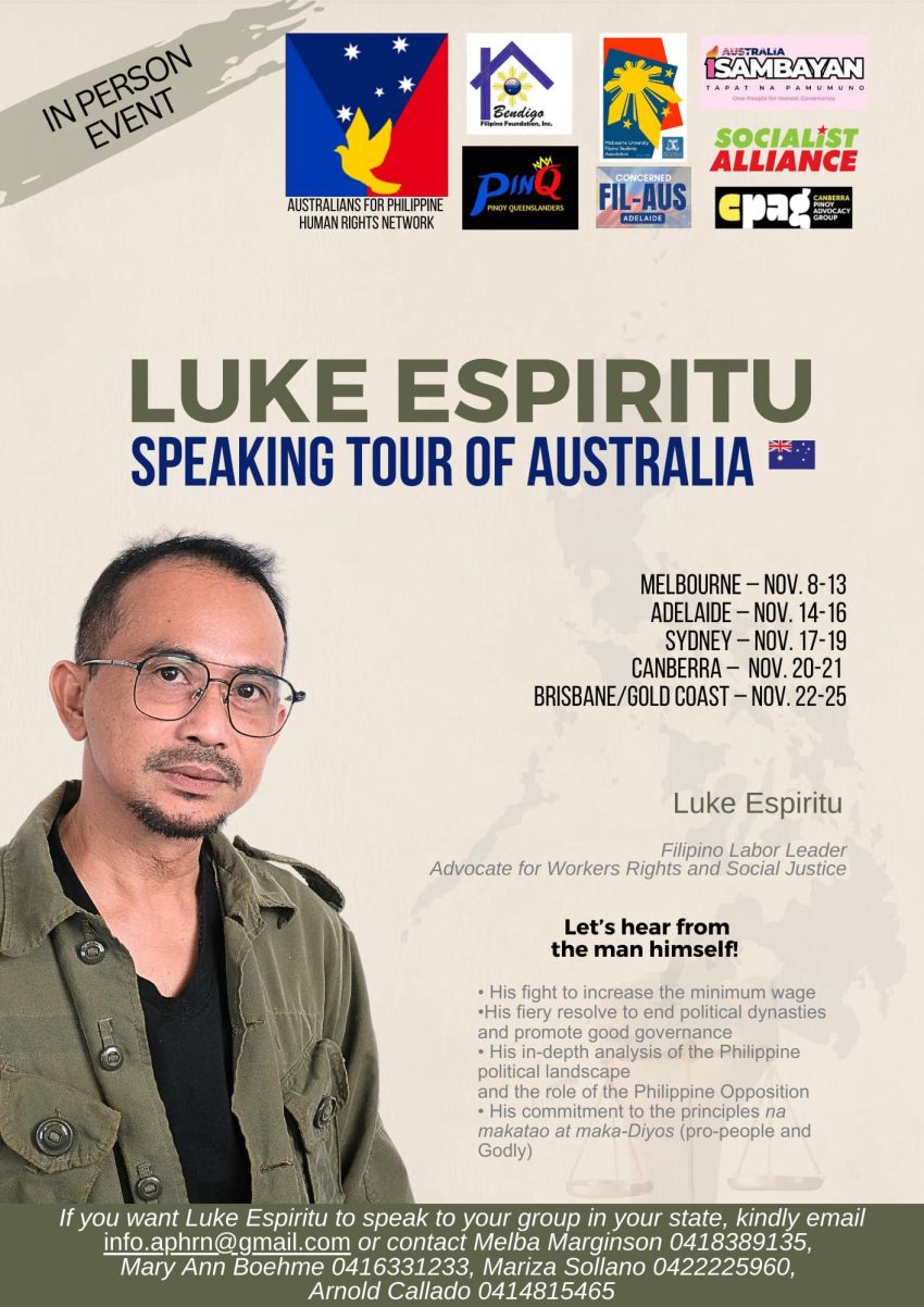 Luke Espiritu is a Filipino labour leader and a campaigner for workers rights and social justice.