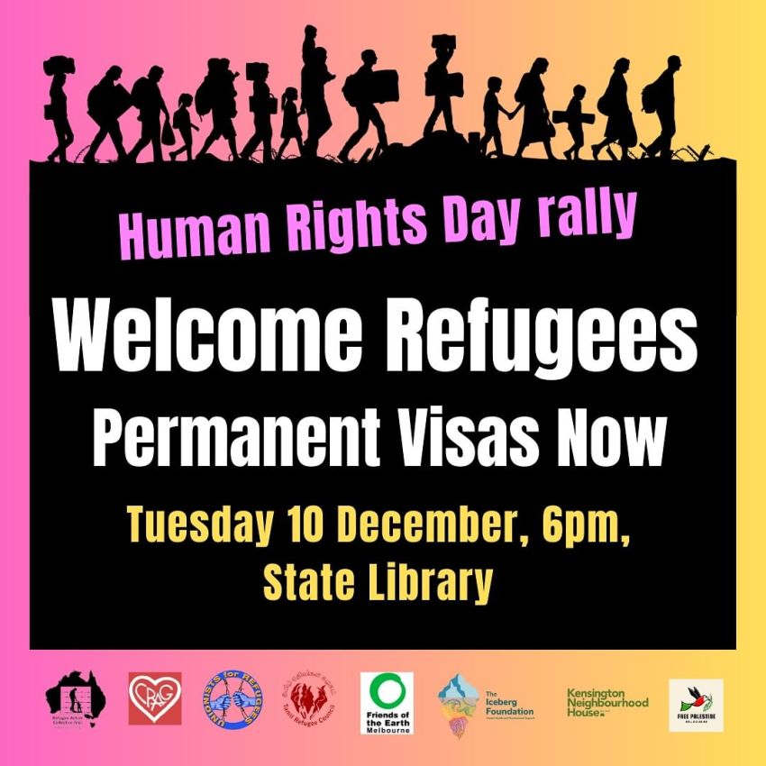 Join us on Human Rights Day, December 10, 6pm at the State Library to rally for refugees and demand permanent visas for victims of fast track 👊