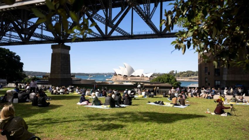 We're at the corner of Lower Fort St and George St at Dawes Point Park, right under the Sydney Harbour Bridge.
