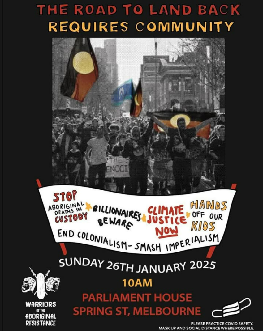 Grab your mob, clapsticks, water, snacks and sunscreen and meet us on the steps of Parliament for a 10am sharp Invasion Day rally - WARs 10th year of organising Invasion Day rallies here in Naarm.