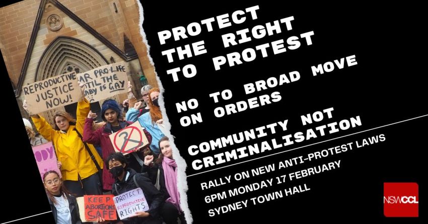 Join NSWCCL, faith, legal, human rights and community groups on Monday 17 February at 6pm to protest these inappropriate and authoritarian restrictions on the right to protest.