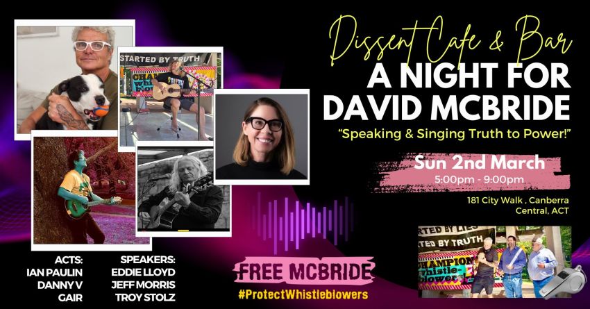 Government whistleblower David McBride is appealing his unjust imprisonment on Mon 3rd March at 10am at the Supreme Court in Canberra.
