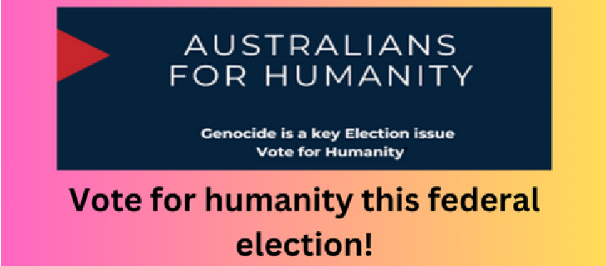 Given the genocidal slaughter of Palestinians and the Israeli leaders’ statements to ethnically cleanse Palestine and annex both Gaza and the West Bank and parts of Lebanon and Syria, Australians for Humanity is calling on Australian politicians to end their complicity of silence and stop appeasing the State of Israel’s crimes against humanity.