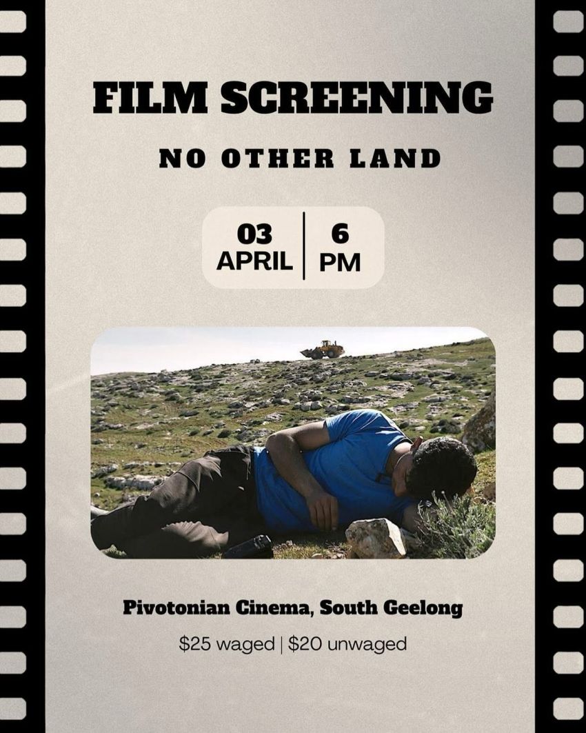 Head to the link in the bio of the 'Free Palestine Geelong' Facebook page to purchase tickets. ($25 waged, $20 unwaged)