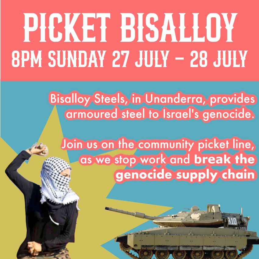 Bisalloy Steel continues to arm Israel's illegal settlements and the IOF with armour plate steel. Wollongong Friends of Palestine won't rest until they stop.