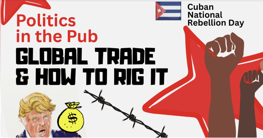 Bullies, billionaires, bullets, embargoes. Or human need & solidarity? Join us on Cuban National Rebellion Day for a powerful & timely discussion with world class speakers (right here in person!), over a drink or coffee.