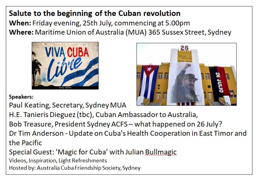 - Bob Treasure President Australia Cuba Friendship Society (What Happened on July 26)